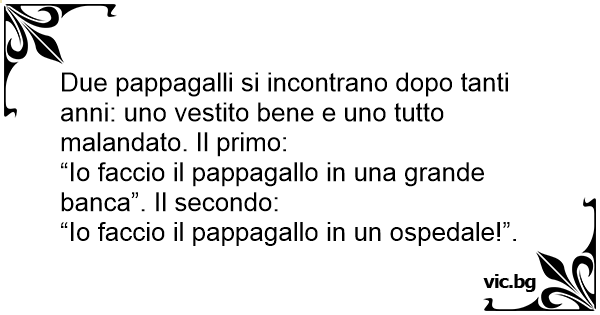 Due pappagalli si incontrano dopo tanti anni: uno vestito bene e uno tutto malandato. Il primo: