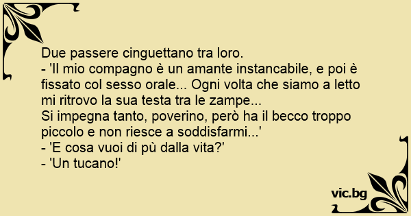 - 'Il mio compagno è un amante instancabile, e poi è fissato col sesso orale... Ogni volta che siamo a letto mi ritrovo la sua testa tra le zampe...
