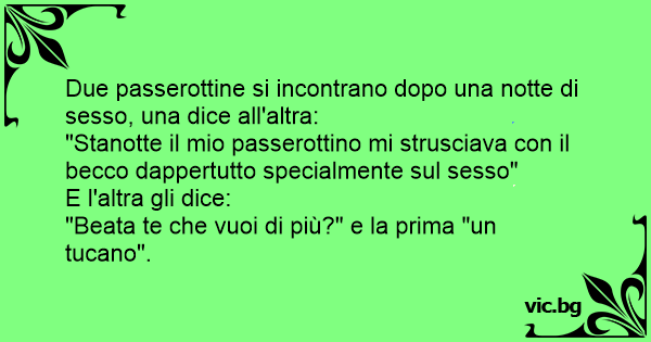"Stanotte il mio passerottino mi strusciava соn il becco dappertutto specialmente sul sesso"