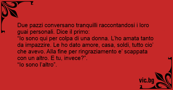 Due pazzi conversano tranquilli raccontandosi i loro guai personali. Dice il primo: