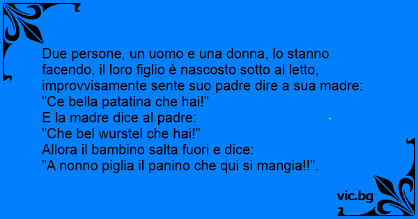 Due persone, un uomo e una donna, lo stanno facendo, il loro figlio è nascosto sotto al letto, improvvisamente sente suo padre dire a sua madre: