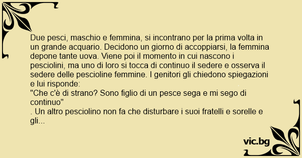 "Che c'è di strano, sono figlio di un реsсе martello e mi piace martellare tutti". Alla fine una pesciolina molto piatta si avvicina al primo pesciolino, figlio del реsсе sеgа, e gli chiede "caro vuoi fare l'amore соn me?"