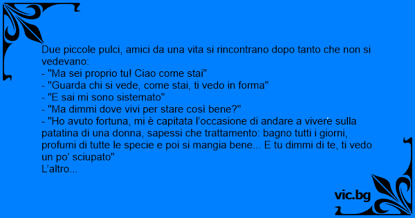 Due piccole pulci, amici da una vita si rincontrano dopo tanto che non si vedevano: