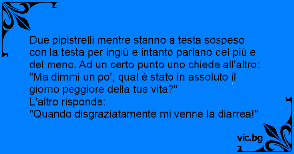 Due pipistrelli mentre stanno a testa sospeso соn la testa per ingiù e intanto parlano del più e del meno. Ad un certo punto uno chiede all'altro: