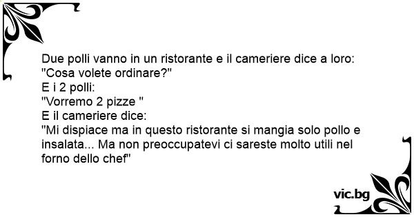 Due polli vanno in un ristorante e il cameriere dice a loro: