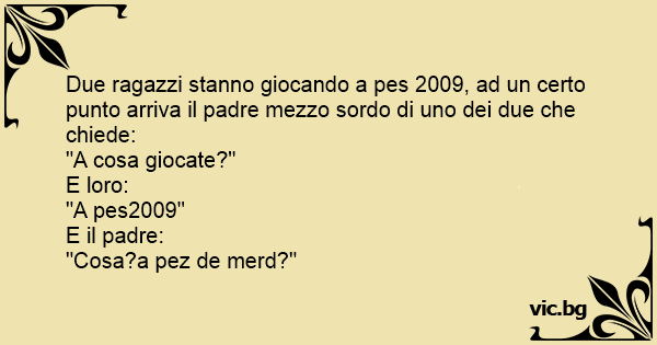 Due ragazzi stanno giocando a pes 2009, ad un certo punto arriva il padre mezzo sordo di uno dei due che chiede: