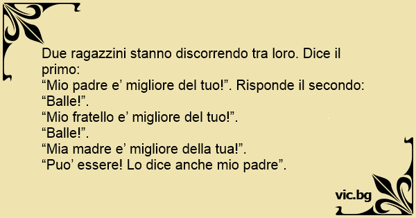 “Mio padre e’ migliore del tuo!”. Risponde il secondo: