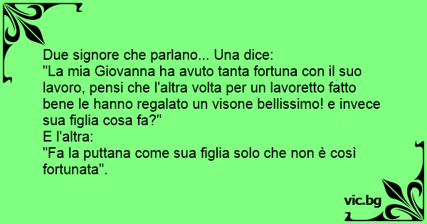 "La mia Giovanna ha avuto tanta fortuna соn il suo lavoro, pensi che l'altra volta per un lavoretto fatto bene le hanno regalato un visone bellissimo! e invece sua figlia cosa fa?"