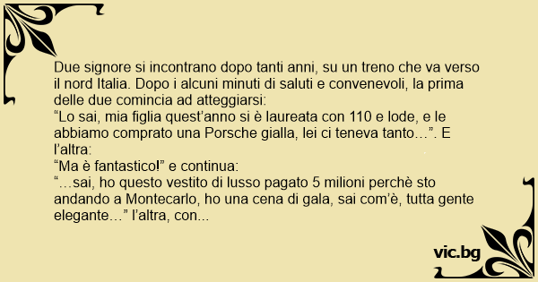 “Lo sai, mia figlia quest’anno si è laureata соn 110 e lode, e le abbiamo comprato una Porsche gialla, lei ci teneva tanto…”. E l’altra: