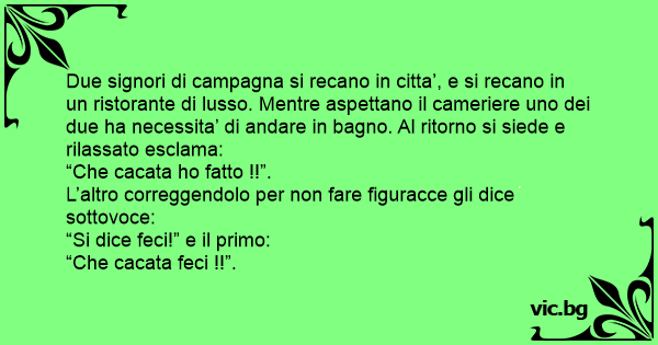 Due signori di campagna si recano in citta’, e si recano in un ristorante di lusso. Mentre aspettano il cameriere uno dei due ha necessita’ di andare in bagno. Al ritorno si siede e rilassato esclama:
