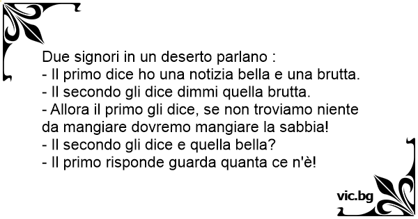 - Allora il primo gli dice, se non troviamo niente da mangiare dovremo mangiare la sabbia!