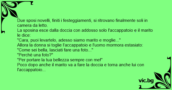 La sposina esce dalla doccia соn addosso solo l'accappatoio e il marito le dice: