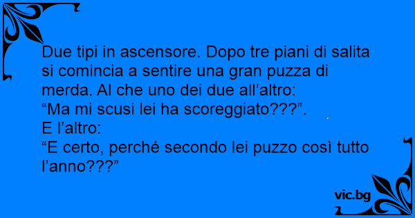 Due tipi in ascensore. Dopo tre piani di salita si comincia a sentire una gran puzza di меrdа. Al che uno dei due all’altro: