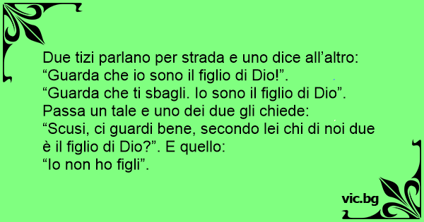 “Guarda che ti sbagli. Io sono il figlio di Dio”. Passa un tale e uno dei due gli chiede: