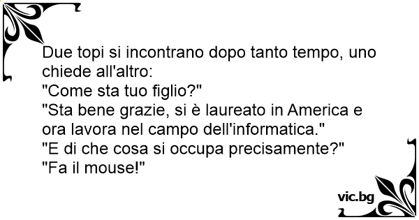 Due topi si incontrano dopo tanto tempo, uno chiede all'altro: