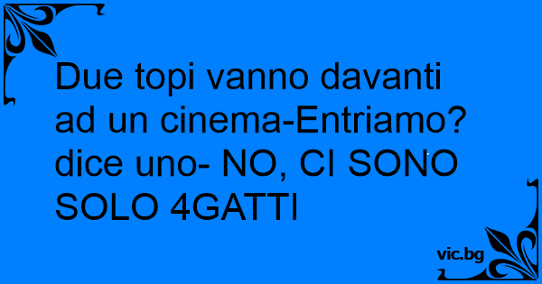 Due topi vanno davanti ad un cinema-Entriamo? dice uno- NO, CI SONO SOLO 4GATTI