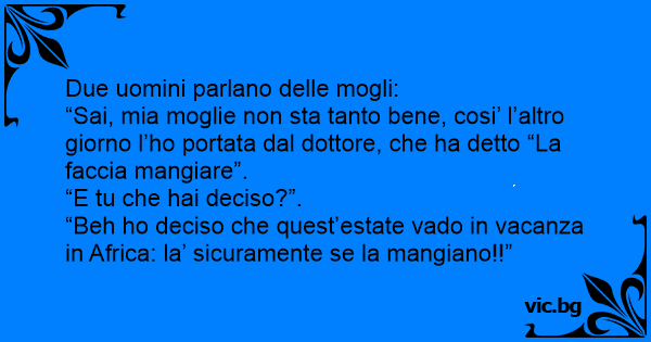 “Sai, mia moglie non sta tanto bene, cosi’ l’altro giorno l’hо portata dal dottore, che ha detto “La faccia mangiare”.