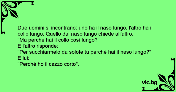 Due uomini si incontrano: uno ha il naso lungo, l'altro ha il collo lungo. Quello dal naso lungo chiede all'altro: