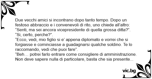 “Beh… potrei farlo entrare come consigliere di amministrazione. Non deve sapere nulla di particolare, basta che sia presente quando lo chiamo e dica un paio di саzzате. 10.000 Euro mensili piu’ le spese. Andrebbe bene?”.