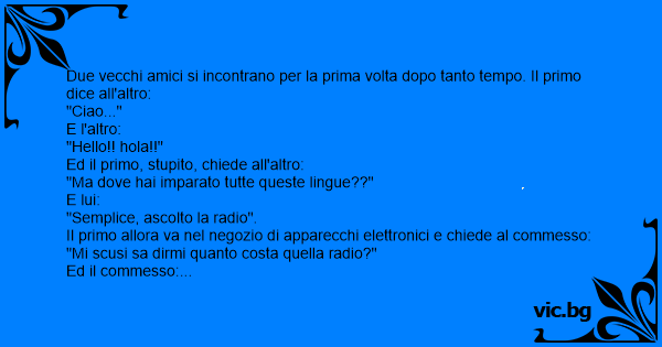 Due vecchi amici si incontrano per la prima volta dopo tanto tempo. Il primo dice all'altro: