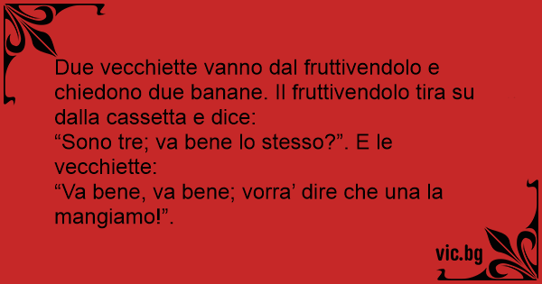Due vecchiette vanno dal fruttivendolo e chiedono due banane. Il fruttivendolo tira su dalla cassetta e dice: