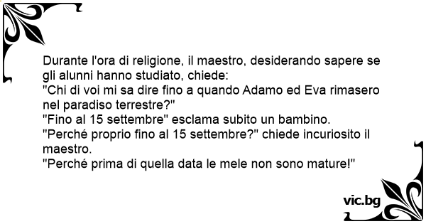 Durante l'ora di religione, il maestro, desiderando sapere se gli alunni hanno studiato, chiede: