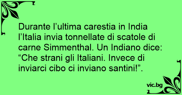 Durante l’ultima carestia in India l’Italia invia tonnellate di scatole di carne Simmenthal. Un Indiano dice: