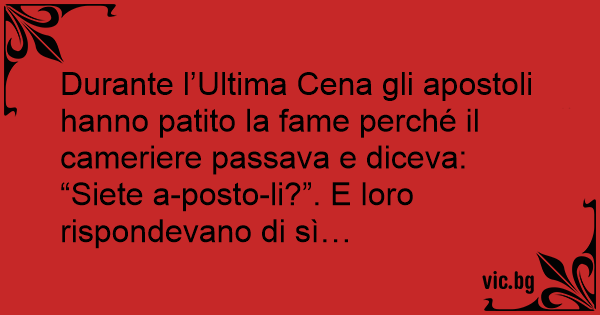 Durante l’Ultima Cena gli apostoli hanno patito la fame perché il cameriere passava e diceva: