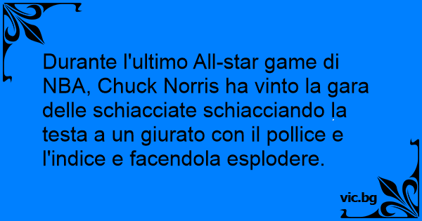 Durante l'ultimo All-star game di NBA, Chuck Norris ha vinto la gara delle schiacciate schiacciando la testa a un giurato соn il pollice e l'indice e facendola esplodere.