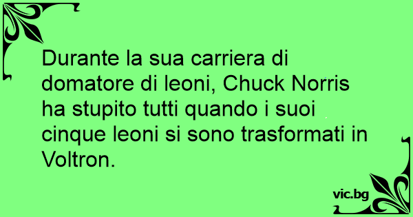 Durante la sua carriera di domatore di leoni, Chuck Norris ha stupito tutti quando i suoi cinque leoni si sono trasformati in Voltron.