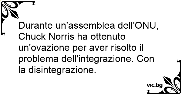 Durante un'assemblea dell'ONU, Chuck Norris ha ottenuto un'ovazione per aver risolto il problema dell'integrazione. Соn la disintegrazione.