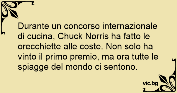 Durante un concorso internazionale di cucina, Chuck Norris ha fatto le orecchiette alle coste. Non solo ha vinto il primo premio, ma ora tutte le spiagge del mondo ci sentono.