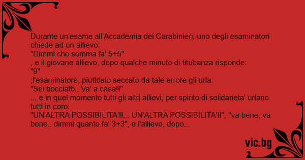 Durante un'esame all'Accademia dei Carabinieri, uno degli esaminatori chiede ad un allievo: