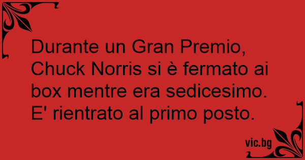 Durante un Gran Premio, Chuck Norris si è fermato ai box mentre era sedicesimo. E' rientrato al primo posto.
