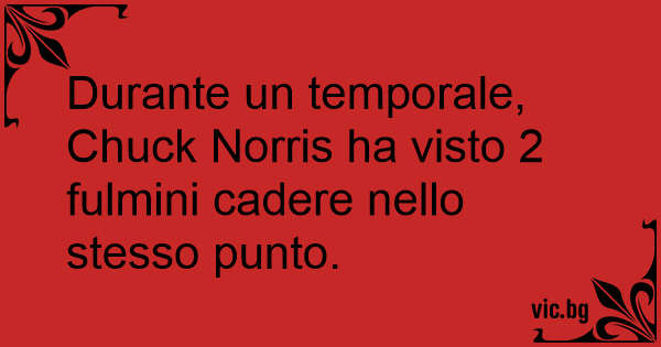 Durante un temporale, Chuck Norris ha visto 2 fulmini cadere nello stesso punto.