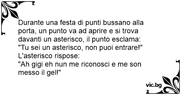 Durante una festa di punti bussano alla porta, un punto va ad aprire e si trova davanti un asterisco, il punto esclama: