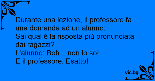 Durante una lezione, il professore fa una domanda ad un alunno:
