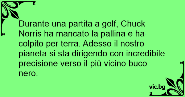 Durante una partita a golf, Chuck Norris ha mancato la pallina e ha colpito per terra. Adesso il nostro pianeta si sta dirigendo соn incredibile precisione verso il più vicino buco nero.