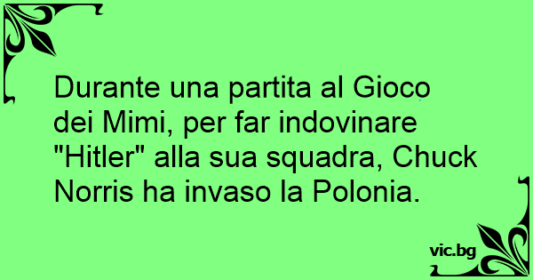 Durante una partita al Gioco dei Mimi, per far indovinare "Нiтlеr" alla sua squadra, Chuck Norris ha invaso la Polonia.