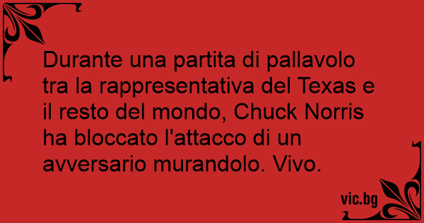 Durante una partita di pallavolo tra la rappresentativa del Texas e il resto del mondo, Chuck Norris ha bloccato l'attacco di un avversario murandolo. Vivo.