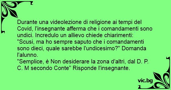 Durante una videolezione di religione ai tempi del Covid, l'insegnante afferma che i comandamenti sono undici. Incredulo un allievo chiede chiarimenti: