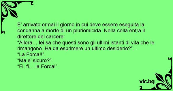 “Allora… lei sa che questi sono gli ultimi istanti di vita che le rimangono. Ha da esprimere un ultimo desiderio?”.