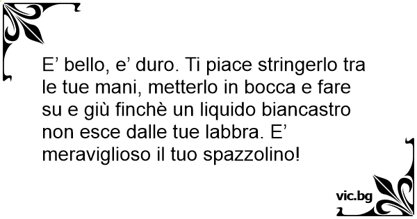 E’ bello, e’ durо. Ti piace stringerlo tra le tue mani, metterlo in bocca e fare su e giù finchè un liquido biancastro non esce dalle tue labbra. E’ meraviglioso il tuo spazzolino!