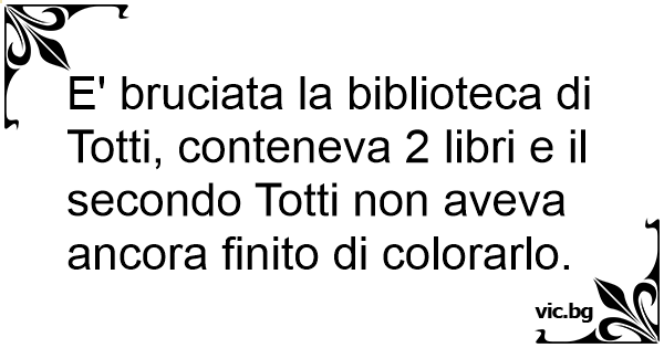 E' bruciata la biblioteca di Totti, conteneva 2 libri e il secondo Totti non aveva ancora finito di colorarlo.