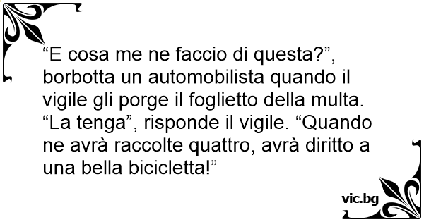 “La tenga”, risponde il vigile. “Quando ne avrà raccolte quattro, avrà diritto a una bella bicicletta!”