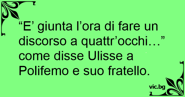 “E’ giunta l’ora di fare un discorso a quattr’occhi…” come disse Ulisse a Polifemo e suo fratello.