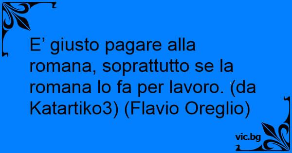 E’ giusto pagare alla romana, soprattutto se la romana lo fa per lavoro. (da Katartiko3) (Flavio Oreglio)
