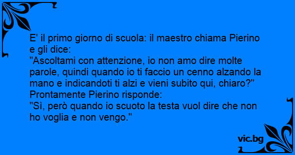 E' il primo giorno di scuola: il maestro chiama Pierino e gli dice: