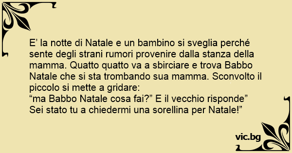“ma Babbo Natale cosa fai?” E il vecchio risponde” Sei stato tu a chiedermi una sorellina per Natale!”