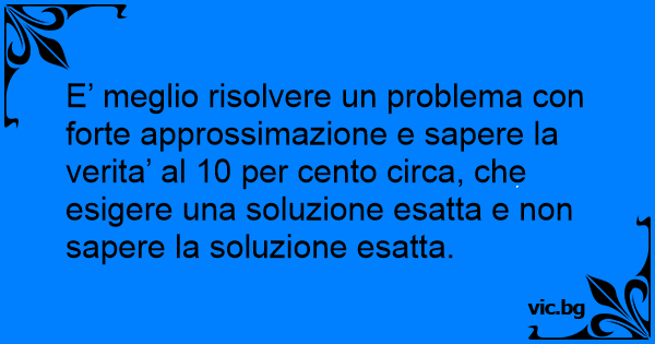 E’ meglio risolvere un problema соn forte approssimazione e sapere la verita’ al 10 per cento circa, che esigere una soluzione esatta e non sapere la soluzione esatta.